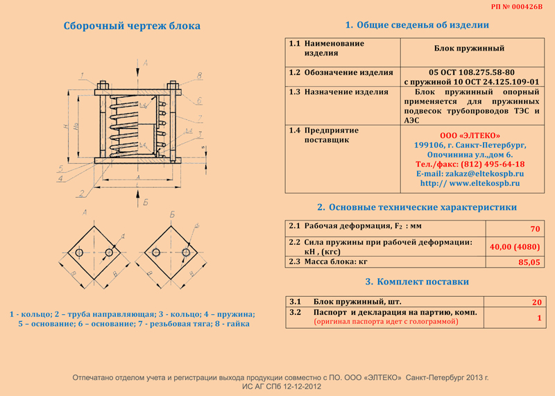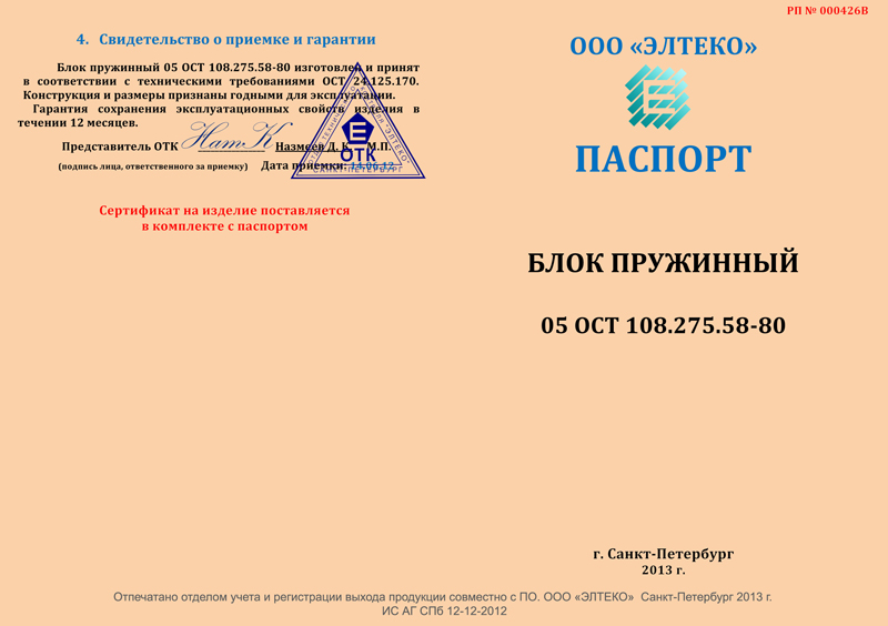 Паспорт качества на блок пружинный содержит следующую информацию: